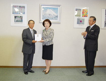2011年8月26日 「中華民国婦女連合会」からの震災義援金を林澄枝・副主任委員が交流協会に贈呈