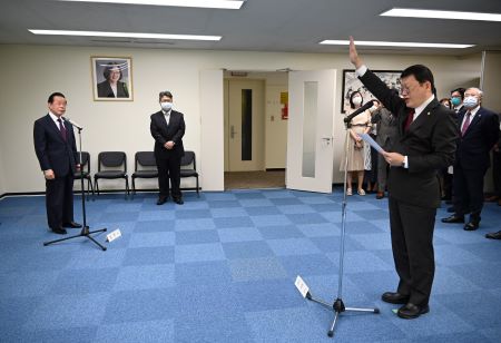 2023年4月21日 駐日代表処で洪英傑・駐大阪弁事処処長の宣誓式