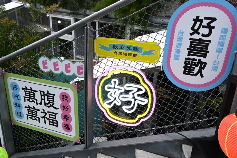 台湾らしい看板やネオンサインが装飾された「台湾夜市ロード」