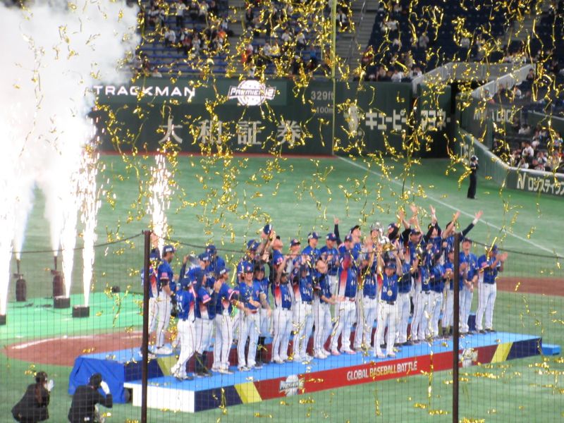 台湾はオリンピック、WBC(ワールド・ベースボール・クラシック)、プレミア12の三大野球国際大会で初めての優勝となり、会場は大きな歓声と喜びに包まれた。