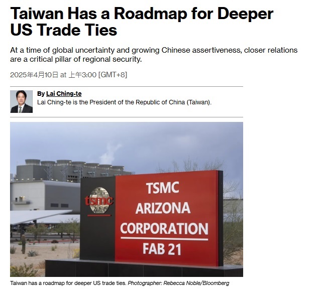 米ブルームバーグは10日、「A Roadmap for Deeper Taiwan-U.S. Trade Ties」(台米の経済・貿易関係を深化するための道筋)と題する頼清徳総統の寄稿記事をに掲載した。頼総統はこの記事の中で、台米貿易に対する台湾の戦略的思考、それに貿易障壁の排除、台湾企業による対米投資の拡大、ゼロ関税の提案など、今後の対米交渉の方向性について明確かつ簡潔に伝えた。記事の概要は以下のとおり。