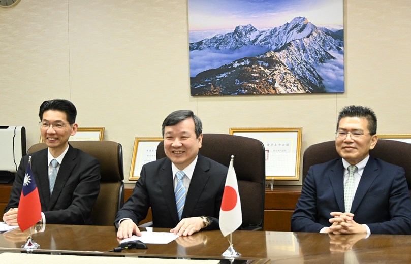 李逸洋・駐日代表は6月10日、台湾の台南市左鎮区と北海道むかわ町のオンライン友好交流協定調印式に立ち会った。