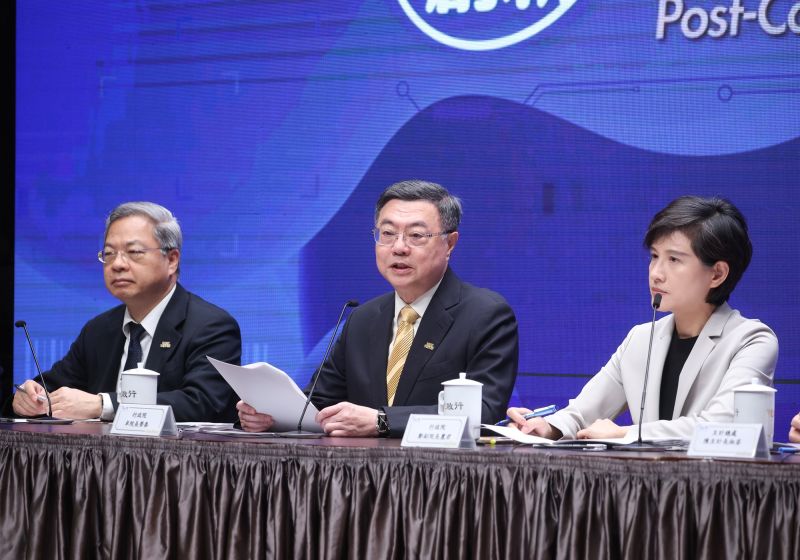 写真提供:中央社 行政院の卓栄泰院長(首相、写真中央)は21日、記者会見を開いて2026年度予算案の内容について国民に説明した。そのうち国防予算は9,495億元(約4.6兆円)で、今年より1,768億元(約8,553億円)、22.9%の増加、GDPの3.32%を占める。