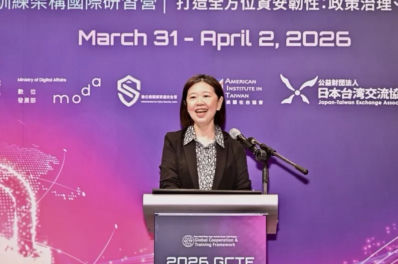 外交部(外務省)と数位発展部(デジタル発展省)資通安全署が共同で行う「GCTF(グローバル協力訓練枠組み)」による情報セキュリティに関する国際ワークショップが3月31日に始まった。開幕式であいさつする数位発展部の楊佳玲政務次長(副大臣)。