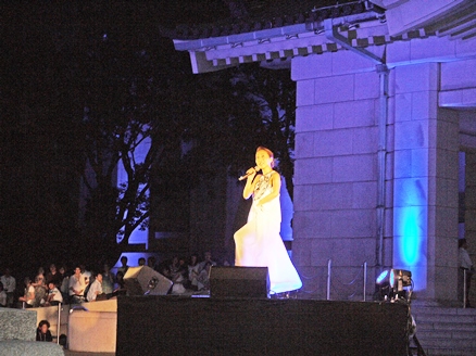この日、本館正面を背景にしたステージに立つ一青窈さんのミニライブは、同展を訪れた多くの参観者を魅了した。