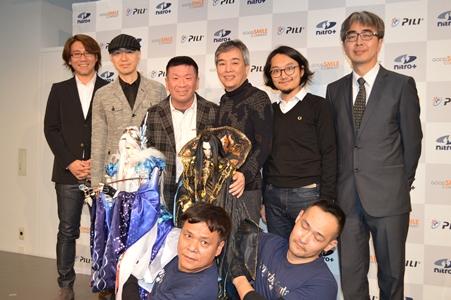 左より安藝貴範グッドスマイルカンパニー代表、小坂崇氣ニトロプラス代表、虚淵玄氏、黄華強・霹靂社会長、黄亮勛・霹靂社副社長兼エグゼクティブプロデューサー、陳義方・霹靂社社長兼プロデューサー