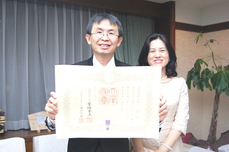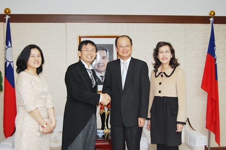 11月3日に発表された「平成26年秋の褒章」で紫綬褒章を受章した、台湾出身で現在仙台市在住の蔡安邦・東北大学教授は、夫人と共に11月14日夕、東京・白金台にある台北駐日経済文化代表処(以下、駐日代表処)に沈斯淳・代表を訪問した。台湾人として初めて「紫綬褒章」を受章した蔡教授は、金属学に基づく準結晶材料の研究において、国際的に著名な研究者であり、この受章は、金属物質学研究についてその功績が評価されたことによるものである。