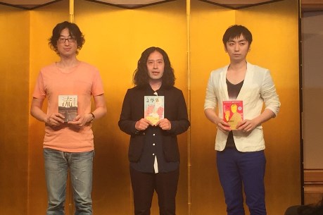 16日夜、東京都内のホテルで、受賞者らの記者会見が行われ、「直木賞」の東山彰良さん、「芥川賞」の又吉直樹さんおよび羽田圭介さんが出席し、受賞の喜びを語った。また、受賞決定後、台湾の洪孟啓・文化部長(文化相)から祝電が届き、朱文清・台北駐日経済文化代表処台湾文化センター長より東山さんに手渡された。