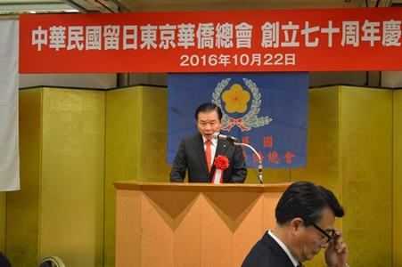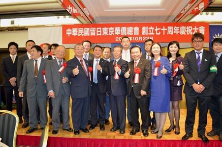 中華民国留日東京華僑総会(以下、東京華僑総会)創立70周年祝賀大会が10月22日、東京都内で開催され、来賓として出席した台北駐日経済文化代表処の謝長廷・駐日代表は、「人生七十古来稀なりというのは昔の話。今は平均寿命が延びて、私もちょうど70歳」と述べ、70周年を迎えた東京華僑総会に祝意を表し、これまでの台日友好関係への貢献に感謝するとともに、「今後も華僑の方々とともに日本との絆を太くし、台日関係の新局面を創出していきたい」と挨拶した。