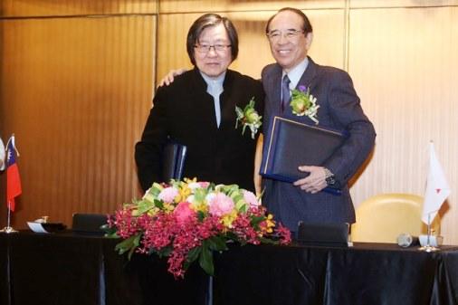 写真提供:中央社 中華民国(台湾)の対日本窓口機関、亜東関係協会の邱義仁会長(左)と、日本の対台湾窓口機関、公益財団法人交流協会の大橋光夫会長(右)は11月30日、「亜東関係協会と公益財団法人交流協会との間の製品安全分野における交流及び協力の強化に関する協力覚書」を交わした。