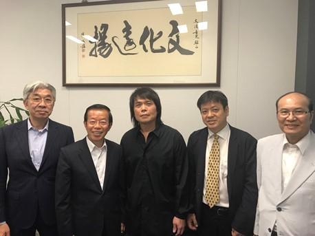 謝長廷・駐日代表(左2)、第28回金曲賞最優秀台湾語アルバム賞受賞者の伍佰(中央)、倪重華・元金曲賞審査委員長(左1)