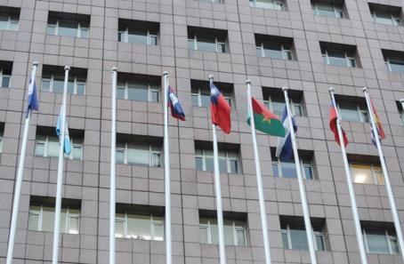 写真提供:中央社 ドミニカ共和国は1日、中華民国(台湾)との断交を発表した。これを受けて中華民国政府も同日、ドミニカ共和国との断交を決定。総統府は声明で、北京当局による「金銭外交」を批判した。写真は中華民国の国交樹立国の大使館が入居するビル。1日午後、ドミニカ共和国の国旗(左から3本目のポール)が撤去された。