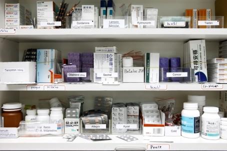 健保局第二門診中心藥局陳列的各種藥品。
