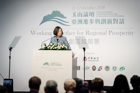 蔡英文総統は11日、台湾北部・台北市内で開催された国際フォーラム「玉山論壇(=玉山フォーラム)」に出席した。「玉山論壇」は昨年初めて開催されたもので、2回目となる今年は世界18カ国から講師、アジアの若手リーダーなど合計48名が招かれた。インド、インドネシア、タイ、マレーシア、フィリピン、ベトナム、シンガポール、カンボジア、ミャンマー、オーストラリア、ニュージーランドなど新南向政策の対象国11カ国からも参加があった。新南向政策とは、ASEAN諸国、南アジア、ニュージーランド、オーストラリアを含めた合計18カ国と幅広い関係強化を図るというもの。