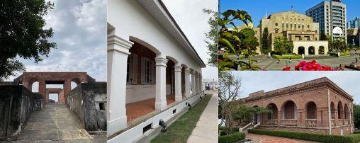 写真提供:文化部 文化部はこのほど、高雄市にある「旗後砲台」と「打狗英国領事館及官邸」、台北市(台湾北部)にある「台北公会堂」を「国定古蹟」に昇格した。写真左から1枚目は「旗後砲台」、2枚目は「高雄州水産試験場(英国領事館)」、右上は「台北公会堂」、右下は「打狗英国領事官邸」。