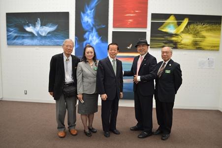 謝長廷・駐日代表(中央)、堀木泰之・悠美会国際美術展理事長(左1)