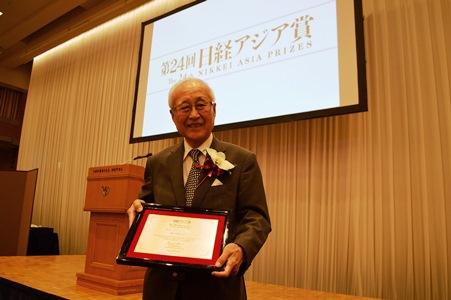 日本経済新聞社が主催する第24回「日経アジア賞」の授賞式が5月29日、東京都内のホテルで行われ、同賞科学技術部門で台湾海洋大学終身教授の廖一久氏が受賞した。台北駐日経済文化代表処からは蔡明耀・副代表が出席し、廖氏の受賞に祝意を表した。