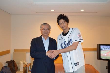 西武台湾デー5周年記念イベント、台湾美食展宣伝大使の速水もこみちさんが始球式