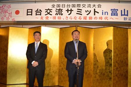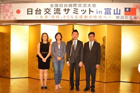 同夜は、富山市内のホテルで歓迎交流会が開催され、宮腰光寛・衆議院議員、森雅志・富山市長らが挨拶し、台湾からの議員らを歓迎した。台湾側からは李世丙・駐大阪弁事処処長が挨拶し、台日地方交流のますますの発展を期待した。