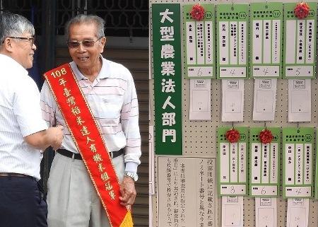 写真提供:台東県政府、中央社 台東県池上郷の農家で今年87歳だという謝美国さん(左の写真)が生産した米が、池上郷と台湾でのコンクールで優勝したのに続いて、日本の「米・食味分析鑑定コンクール」でも金賞を受賞した。右の写真は日本のコンクールでのもの。左下の謝さんの米には8票が投じられ、金賞に選ばれている。