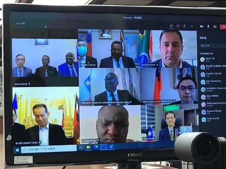 写真提供:外交部 欧州とラテンアメリカに続き、アフリカの29カ国の国会議員181名が「フォルモサクラブ」を設立。リモート方式での設立大会では、WHOなど国際組織への台湾の参与支持を表明した。写真は設立大会の様子。
