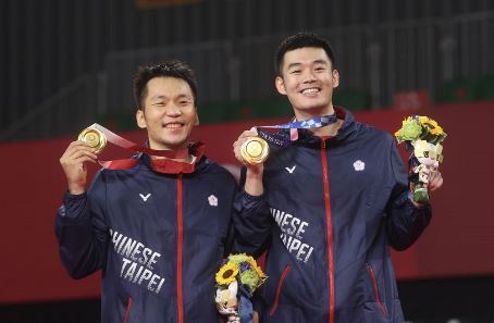 7月31日に行われた東京オリンピック・バドミントン男子ダブルス決勝で、台湾の王斉麟(ワン・チーリン)選手(右)と李洋(リー・ヤン)選手(左)のペアが、中国の劉雨辰選手、李俊慧選手のペアを21対18、21対12の2-0で下し、試合時間わずか34分間で見事金メダルを獲得した。