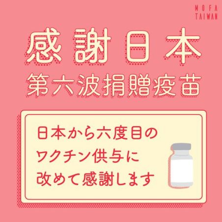 写真提供:外交部フェイスブックより 日本の外務省の茂木敏充大臣は26日午前、翌27日に台湾に対して英アストラゼネカ製新型コロナウイルスワクチン30万回分を提供すると発表した。中華民国(台湾)外交部(日本の外務省に相当)はニュースリリースで、「心からこれを歓迎し、感謝する」と述べた。