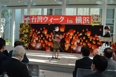 洪益芬・「台湾ウィークin横浜」実行委員会委員長は、「コロナ禍で台湾に行けないので、横浜で同イベントを開催することにより、台湾の味わいを知ってもらいたい。会場の台湾のミニ屋台を楽しんでください」と挨拶した。