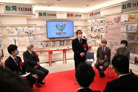 同セレモニーには、謝長廷・駐日代表、鈴木憲和・自由民主党青年局長/衆議院議員、谷崎泰明・日本台湾交流協会理事長、高井昌史・紀伊國屋書店会長、王淑芳・台湾文化センター長らが出席し、テープカットを行った。出席者らは、漫画を通して相互理解を深め、若い世代の友好の種となり、台日の出版・文化交流の深化につながることを期待した。