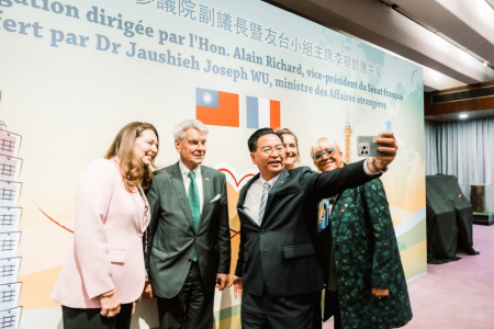 中華民国(台湾)外交部の呉釗燮部長(外相)は24日、台湾を訪問中のフランスのアラン・リシャール上院副議長の一行5人をワーキングランチで歓待した。リシャール副議長は、フランス上院の親台湾派議員連盟の代表も務める。一行はほかに、同じく議員連盟に参加するAlexandra Borchio-Fontimp上院議員、Valérie Boyer上院議員、Brigitte Devésa上院議員、及び事務局のPhilippe Péjo氏。