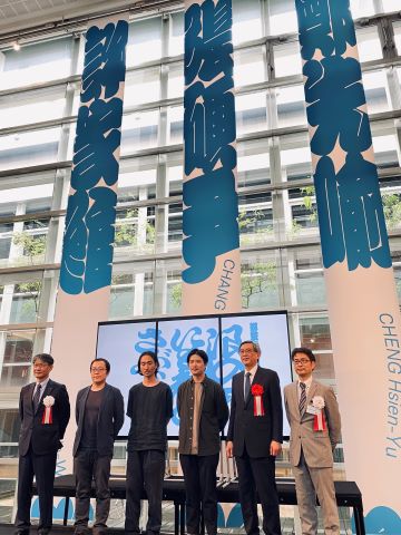 写真左より、伊藤和貴・山口市長、許家維(シュウ・ジャウェイ)、鄭先喻(チェン・シェンユゥ)、張碩尹(チャン・ティントン)、周学佑・駐日副代表、磯部素男・山口情報芸術センター館長