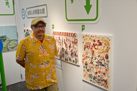 今回、台湾式大宴会を忙しく準備する様子をイラストに描いたヤマサキタツヤさんは、「日本人が描く台湾は台湾人が描く台湾と見方が異なるので、日本人が見て理解でき、台湾人が見ても共感するような作品となることを心がけた」と挨拶した。