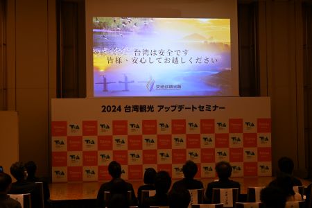 同セミナーには周永暉・台湾観光庁長官(交通部観光署長)、葉菊蘭・台湾観光協会会長らが出席し、それぞれ挨拶を述べた。このなかで、花火や台湾ランタンフェスティバルなどのイベントや、グルメ、自然、鉄道、客家・原住民族文化など、多様なニーズに応える旅行スポットや優待企画を紹介し、台湾は日本からの観光客を受け入れる準備が万端であることを強調し、台日の旅行業関係者らとともに「一起加油!」(一緒に頑張ろう!)の掛け声で台湾観光をPRした。