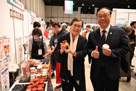 「2024台遊館in渋谷」の会場を訪れた周永暉・台湾観光庁長官(右)と葉菊蘭・台湾観光協会会長(左)