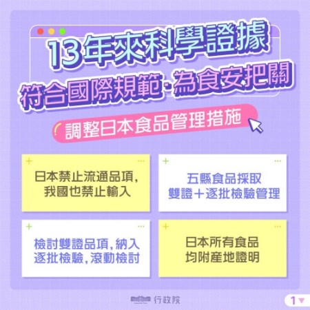 写真提供:衛生福利部サイトより 衛生福利部が23日、日本産食品の輸入に関する規制を緩和する方針を発表。安全性確保を前提に、科学的根拠と国際的な基準に基づき、日本産食品の輸入規制措置を再び緩和する。
