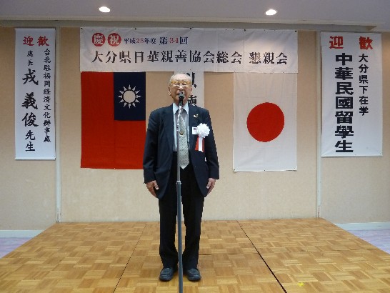 大分縣第34次日華親善協會總會懇親會會長岸田嘉夫致詞