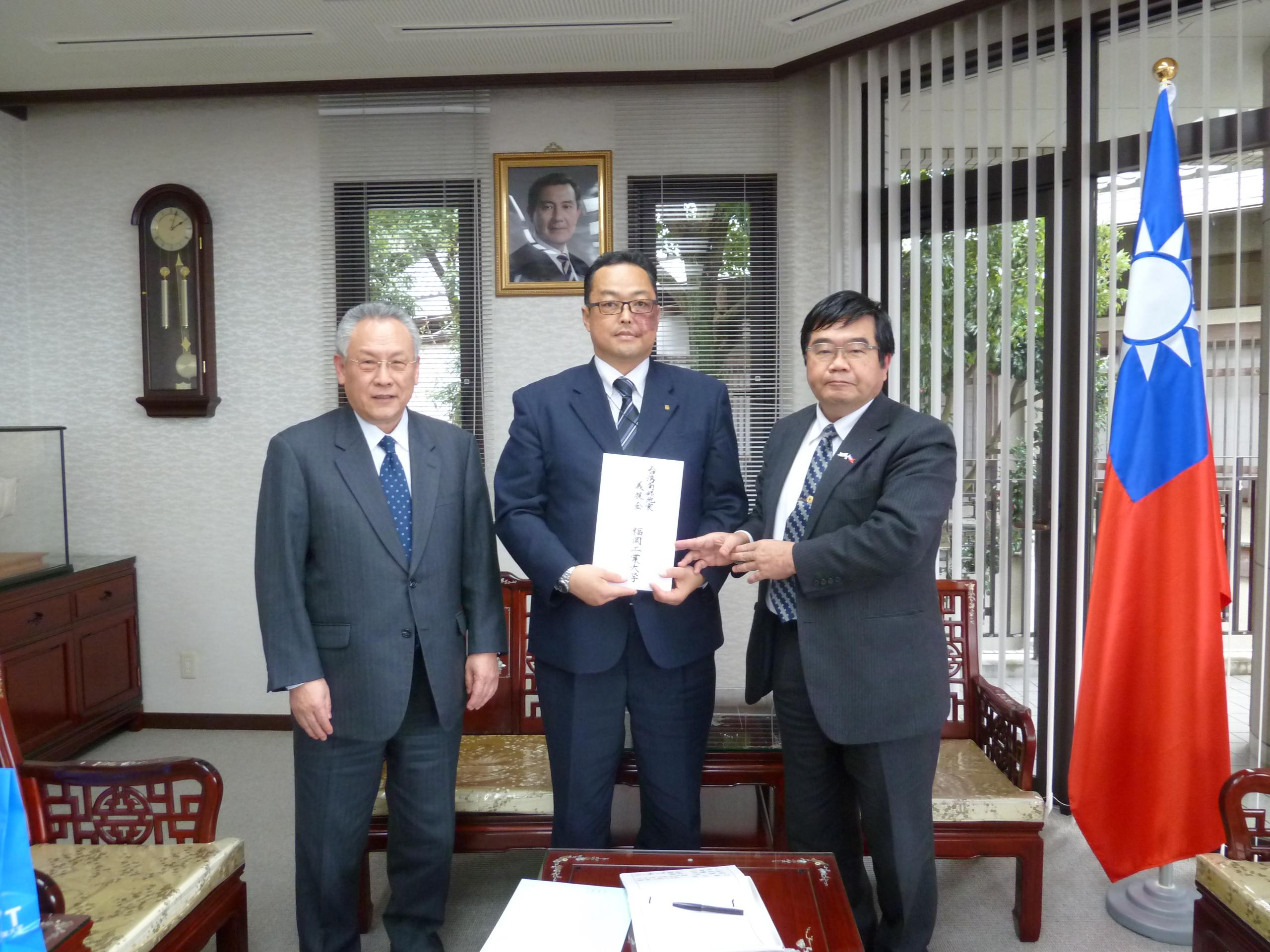 3/11戎總領事接受福岡工業大學常務理事大谷忠彥捐獻台灣南部大震災賑災金02
