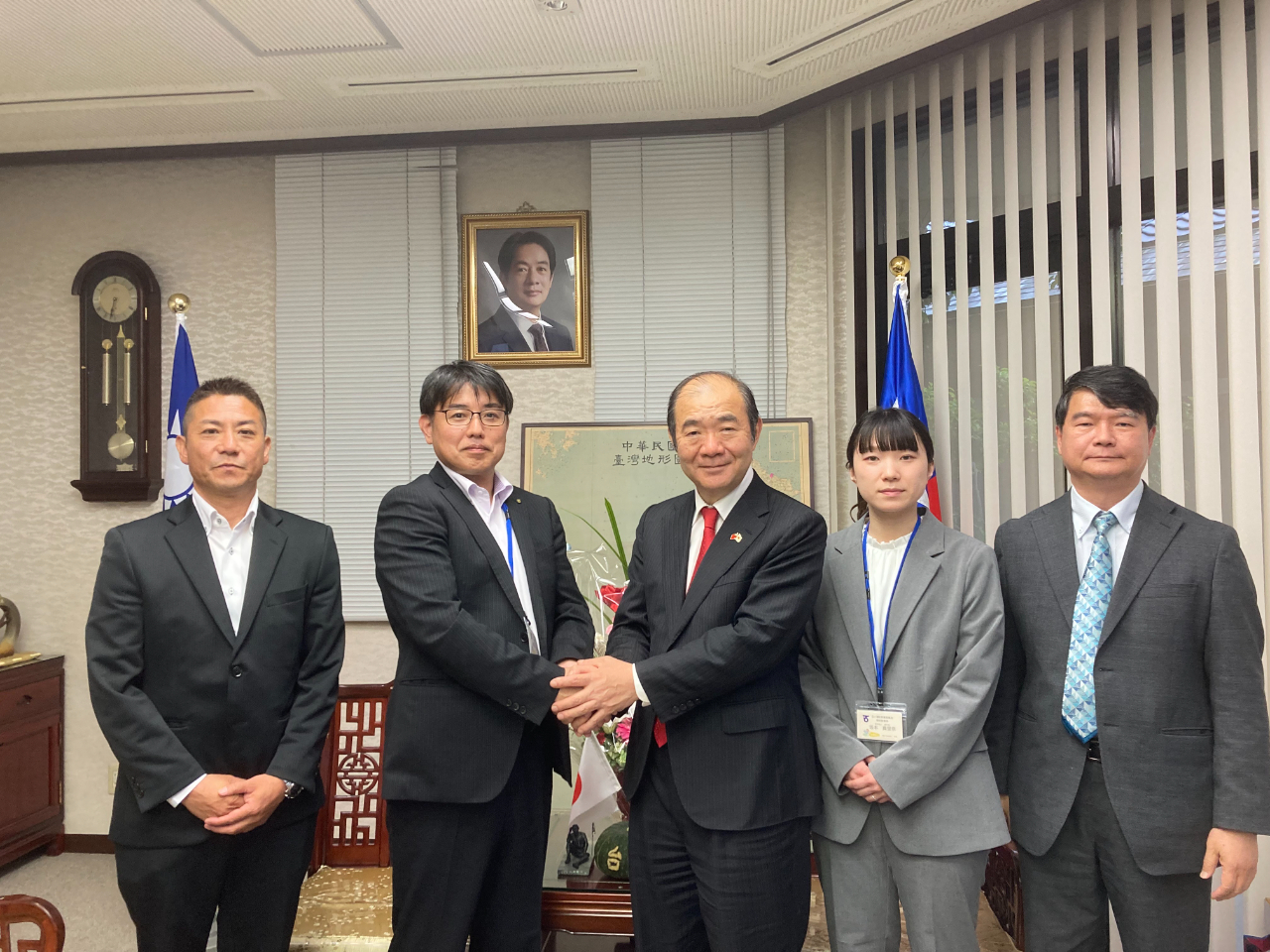 5月27日陳總領事銘俊(中右)接待宮崎縣五ケ瀨町教育長津奈木考嗣(中右)來訪。