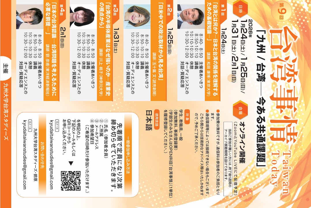 第九回 台湾事情:「九州/台湾―今ある共通課題」 | イベント | 九州大学(KYUSHU UNIVERSITY)