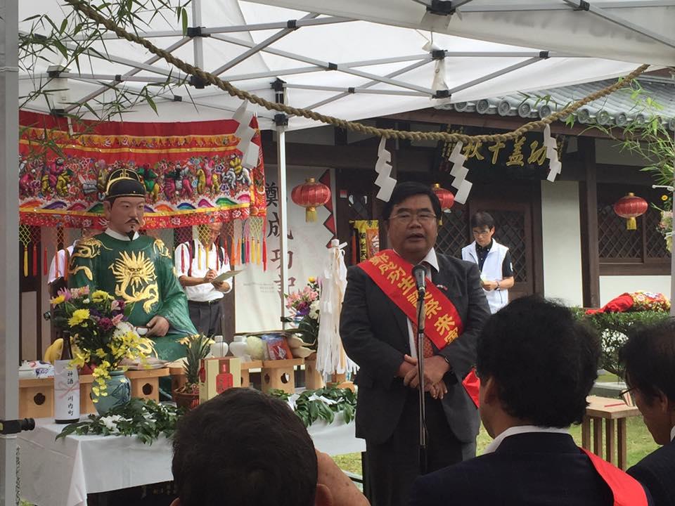 鄭成功誕辰祭祀大典ㄧ2017.7.14 今天是延平郡王第487次誕辰日,其出生故鄉長崎縣平戶市舉行祭祀大典,全世界鄭氏宗親會亦派員主持祭典,台南市鄭氏宗親會及安海文化創意發展協會亦派員參加祭祀。 福岡辦事處戎處長緊接著平戶市長黑田成彥之後,致詞表示:冥冥中似乎在487年前,因著鄭成功這位歷史英雄人物的誕生,將平戶市、南安市及台南市三地,像ㄧ根肉眼看不見的繩索緊緊的扣在ㄧ起,今天三地的人才能共聚一堂。日本諺語:「縁は異なもの味なもの」(緣份是奇異又味道雋永的東西);人與人之間,地區與地區之間,甚至國家與國家之間,往往因著ㄧ個契機,ㄧ個緣份,就緊密的相聯在一起。平戶市、南安市、台南市正因鄭成功這個契機、這個緣份,得以結合在一起。 其次,戎處長繼續表示:為緬懷鄭成功,平戶市政府近年大力整修鄭成功廟、紀念館及山門,這是一個重要的憑藉,因此,迄今吸引了2萬外國遊客,每年國內5000人至此憑弔。以觀光振興市政。 最後,戎處長強調:鄭成功已逝世幾百年,至今仍受人景仰、被人尊敬;活在人們心中。這事啟示了,人該怎麼活,何種生存之道;才能讓後世不遺忘,永活人們心中;代遠年煙,仍舊不改。今日,鄭成功似乎給出席祭拜的眾人上了一堂人生哲學課。沈思片刻、、、。 (台北駐福岡經濟文化辦事處處長戎義俊 2017.7.14.11:55返回福岡途中) (戎處長是以日語及國語雙聲帶致詞)