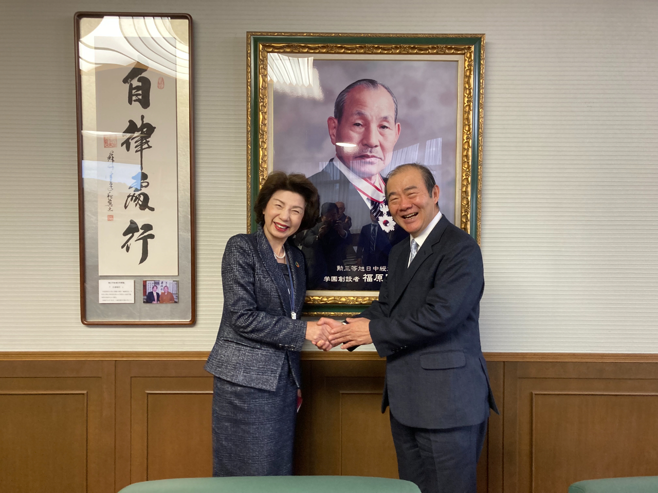 陳銘俊処長は12月21日学校法人福原学園(九州共立大学、九州女子大学)理事長福原公子を表敬訪問。