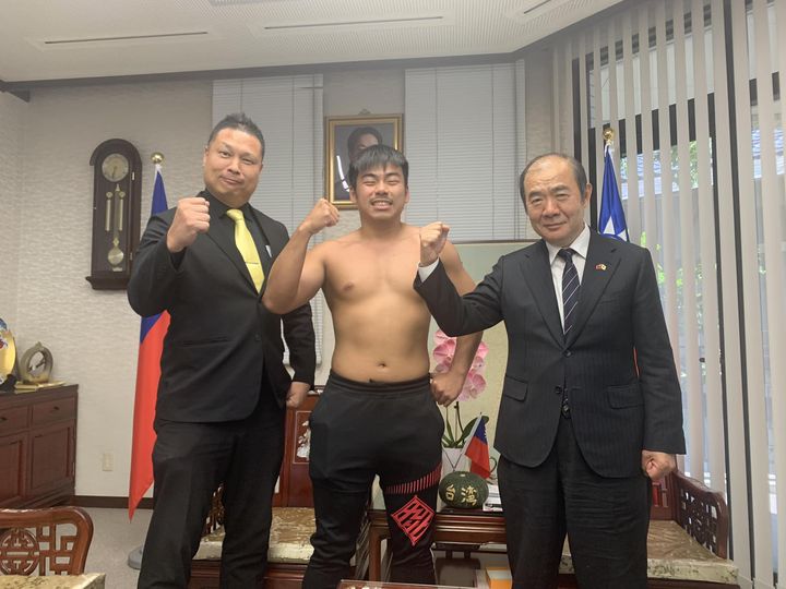 九州プロレス社長 筑前りょう太と台湾人選手JET WEIご一行は6月4日当処をご来訪。台日のプロレスの交流について意見交換。