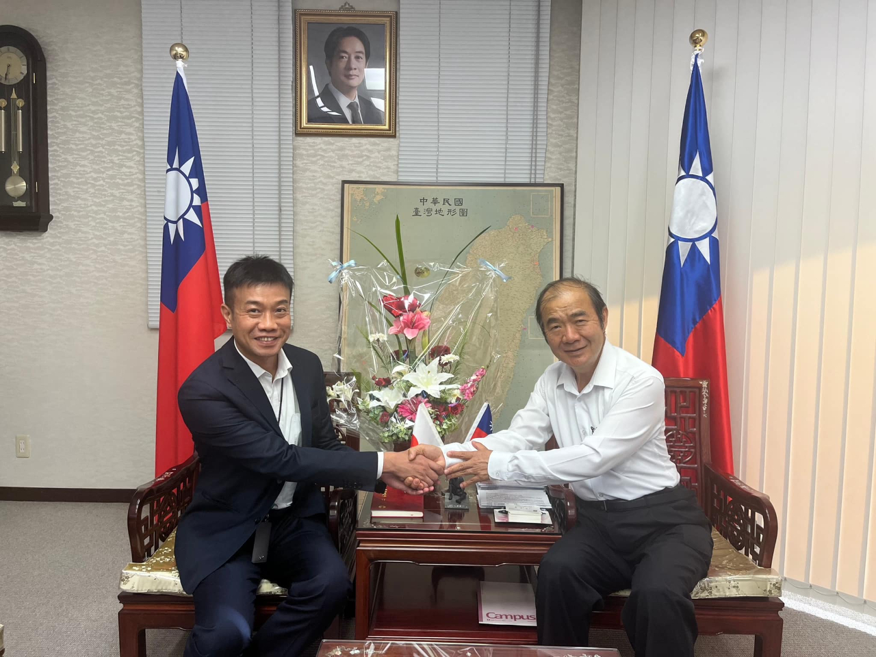 台新國際商業銀行福岡派出所王柏璋所長は8月22日当処をご来訪。台日のビジネス交流に意見交換。