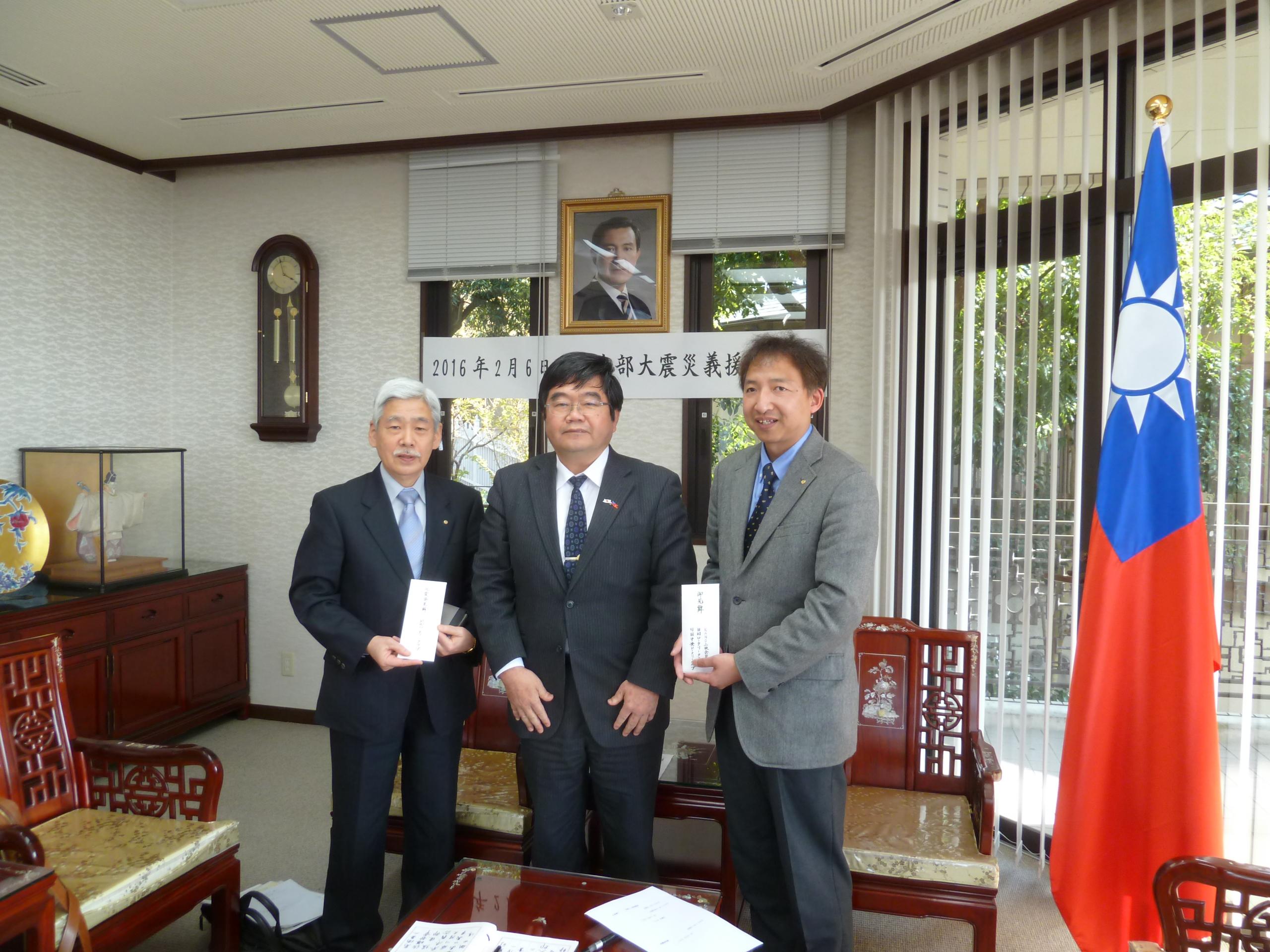 3/22日田ロータリークラブ織田莊太郎会長‧日田中央ロータリークラブ藤井賢治会長が台湾南部大震災義援金を提供した。