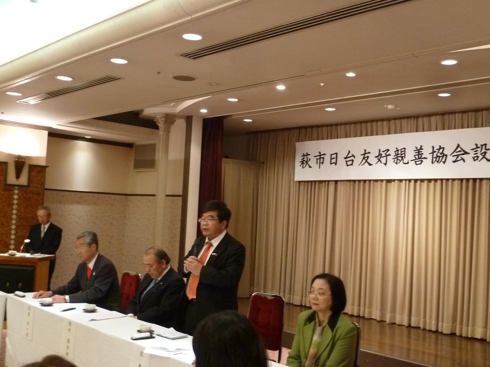 11月25日、戎総領事が「萩市日台友好親善協会成立大会」に出席。