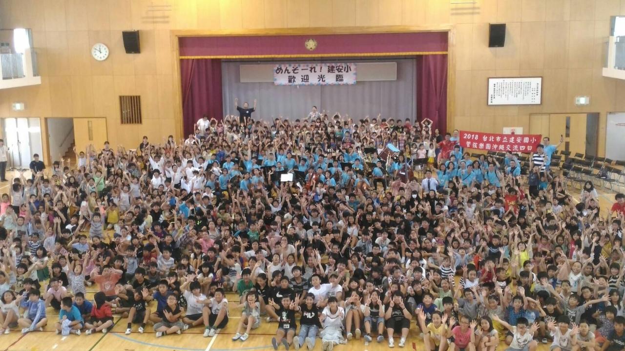 臺北市大安區建安國小管弦樂團在楊智堅校長率領及老師、家長陪同之下,於本(6)月7日前來沖繩縣與此間學童進行音樂交流。一行行程在那霸日臺親善協會與駐那霸辦事處協助下,7日下午與中城村中城小學、8日上午與那霸市泊小學進行交流。
