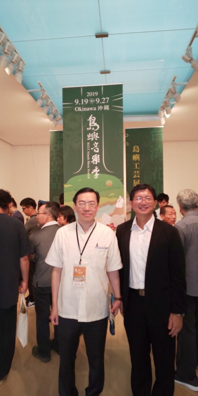 國立台東生活美學館李吉崇館長(右)與駐那霸辦事處范振國處長(左)於「島嶼工藝展」會場合影。