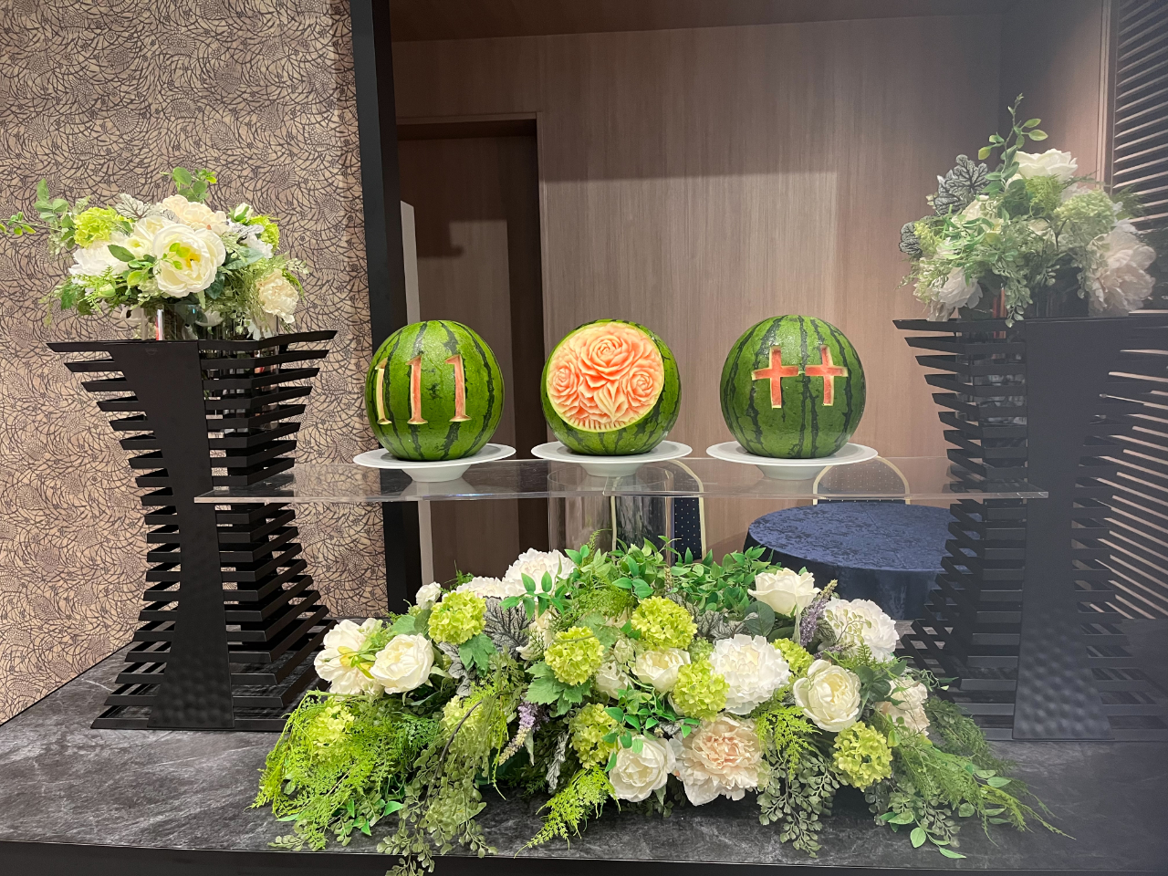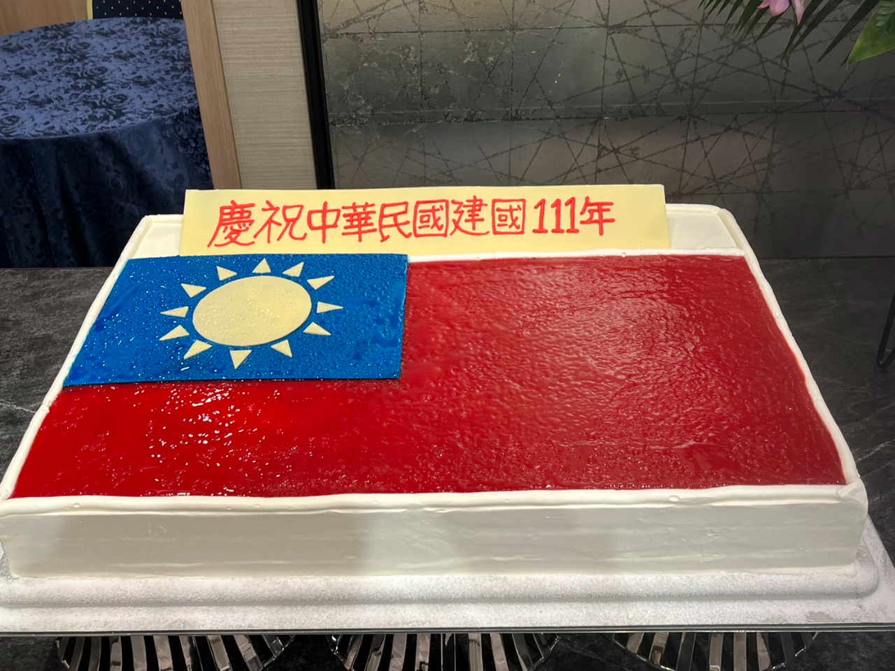 本次是首度於台資飯店「嘉新琉球COLLECTIVE飯店」舉行國慶酒會,會場內外於酒會期間皆懸掛我國國旗,並於會場內設置祝賀國慶之水果雕刻、國旗造型蛋糕及我國產文旦,甚為吸引來賓目光。