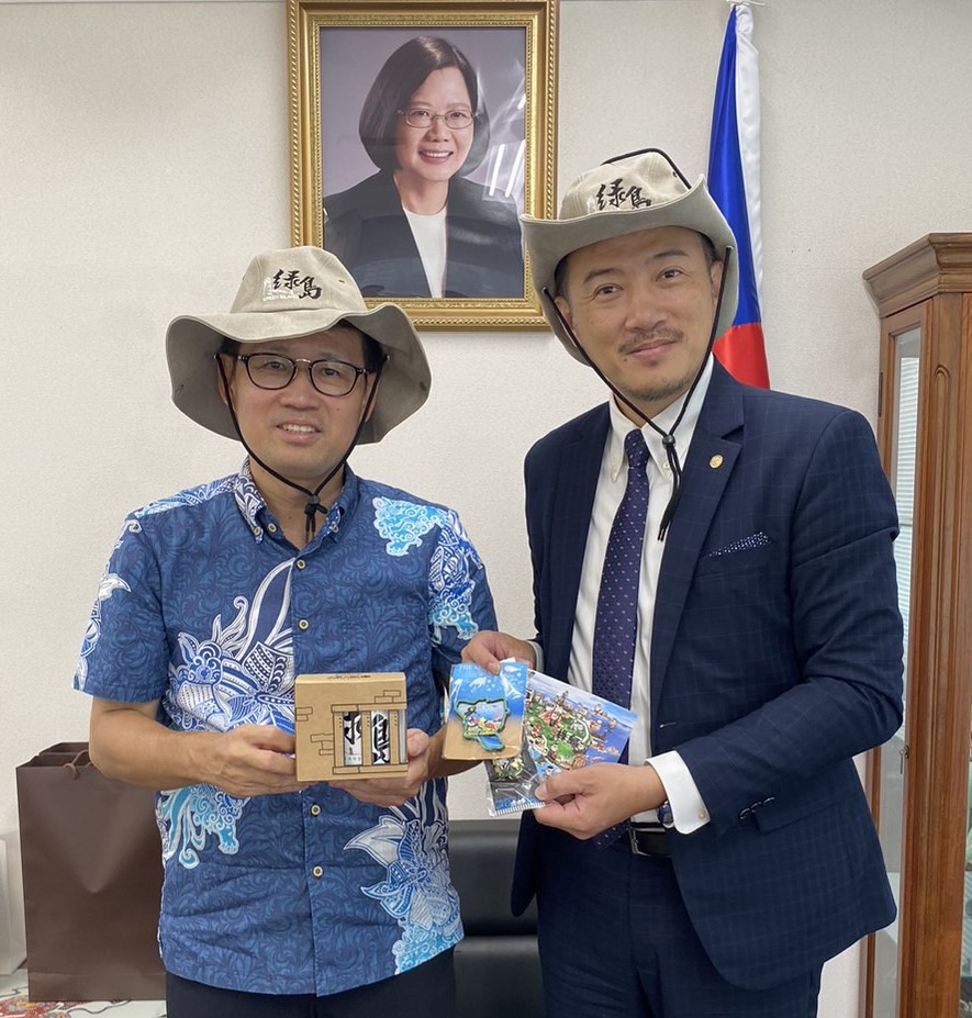 2023/06/08 王瑞豐總領事(左)接見中琉文化經濟協會陳會長俊池(右),並就推動台沖各項交流交換意見。