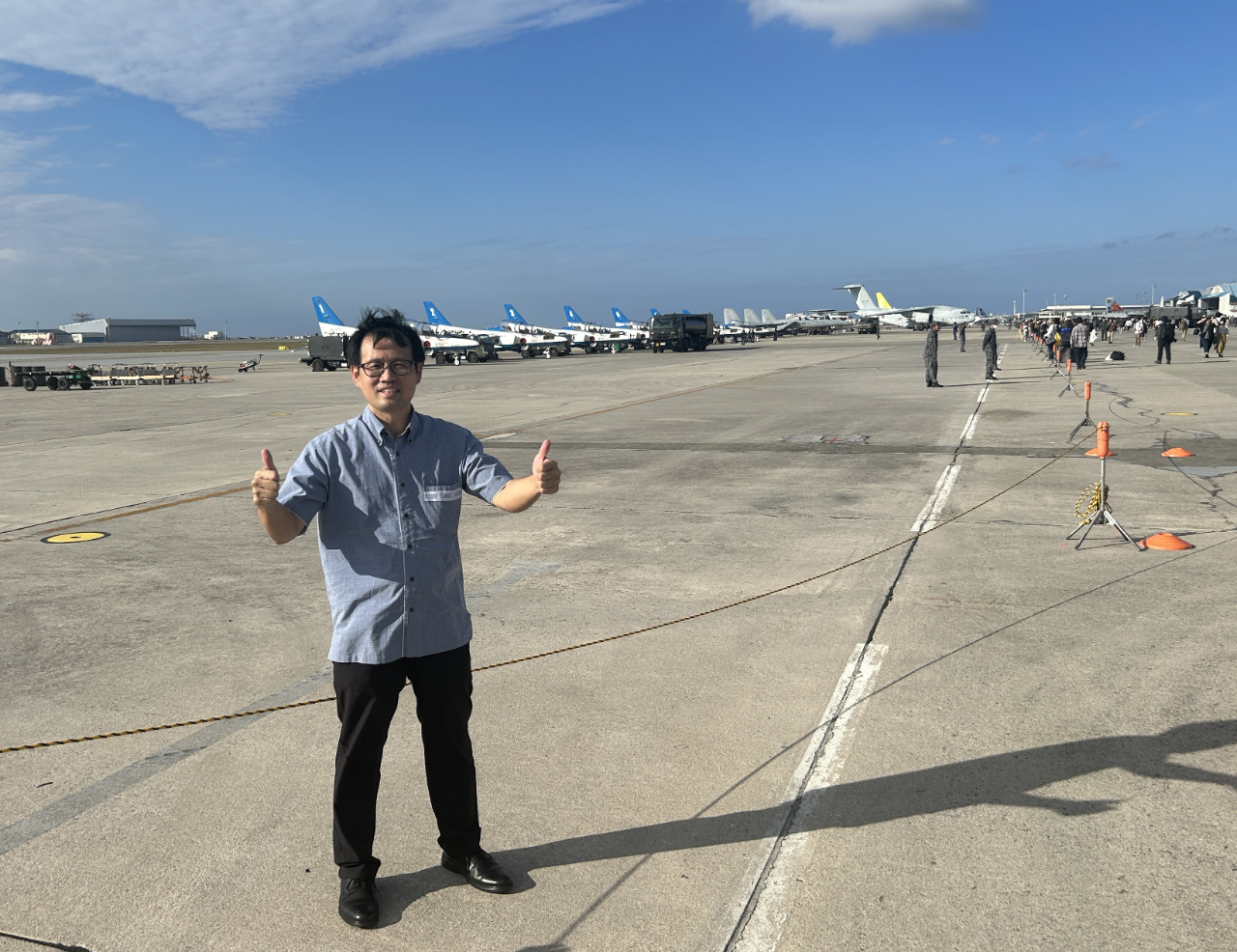 2023/12/10本處王瑞豐處長偕家眷參觀「航空自衛隊那霸基地」每年定期舉行的「美麗島航空展(日文:美ら島エアーフェスタ)」,現場展示各式戰闘機、雷達等防空武器、日本政府接送國賓專機及赴伊拉克等地的撤僑專機等,並有遠從宮城縣前來的「藍色衝擊波飛行表演隊(日语:ブルーインパルス;英語:Blue Impulse)」,首次在沖繩進行飛行表演,航空展開放讓民眾進入戰鬥機駕駛艙試乘,體驗一下飛行員的氛圍,稍稍滿足了軍事迷及航空迷的夢想。